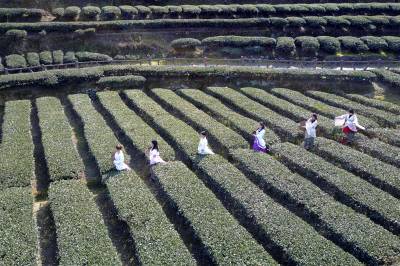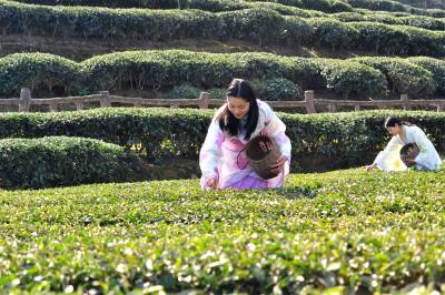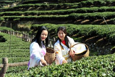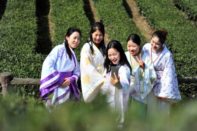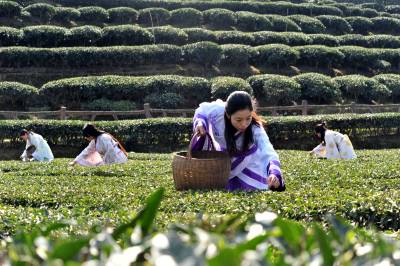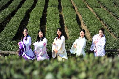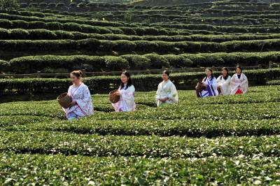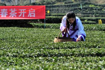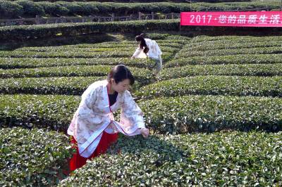 夷陵:汉服美女进茶园 体验采摘早春茶