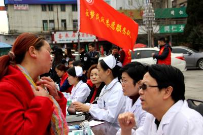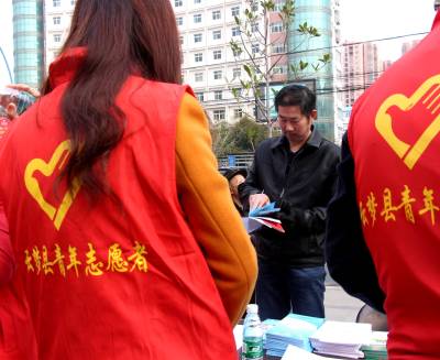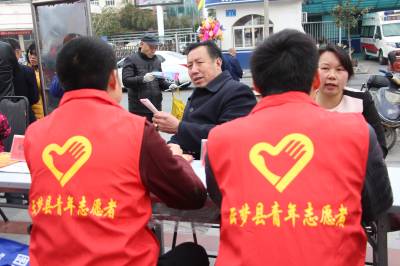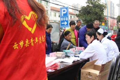 2017年3月3日,共青团云梦县委在县剧院广场组织青年志愿者开展学雷锋活动。今年3月5日是第54个学雷锋纪念日。在第五十四个学雷锋到来前夕,共青团云梦县委组织卫生、公安、通讯、人社、工商、电力等10多个部门的青年志愿者走上街头,为城乡居民免费提供健康检测、法律咨询、通讯电力等多项服务,受到群众的欢迎。共青团云梦县委、云梦县义工联合会等青年志愿者将青年志愿者学雷锋活动走向常态化,常年开展治安义务巡逻,帮扶困难群众、孤寡老人、留守儿童、贫困学生,开展保护母亲河,为母亲河保洁,开展义务植树、义务体检诊疗、看望慰问留守儿童等活动,成为活跃在云梦城乡的“活雷锋”。本报视界网 陈保忠 胡 雯 摄