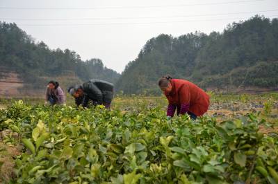 3日,宣恩县李家河镇二虎寨村绍荣园艺合作社的员工正在对培育好的有“绿富美”之称的白柚树苗进行移栽。 贡水白柚因其良好的绿化效果和经济效益在当地被称为“绿富美”,是该镇的主要经济作物。该合作社全年移栽白柚苗30万株,3年内可挂果,近50余户贫困户入社常年做工管理“绿富美”。