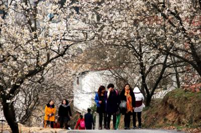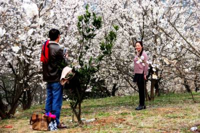 湖北十堰:书香满园春意浓 樱满枝头花正好 校园为民众开放赏花