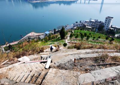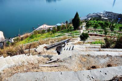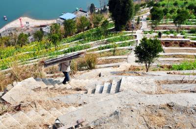 5日,在巴东县官渡口镇西瀼口社区生态椪柑园一期土地整治现场,工人在拆除模板。