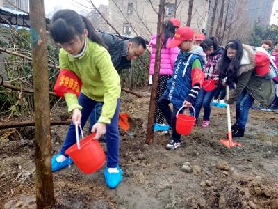 武汉学雷锋小志愿者 义务植树护绿在行动