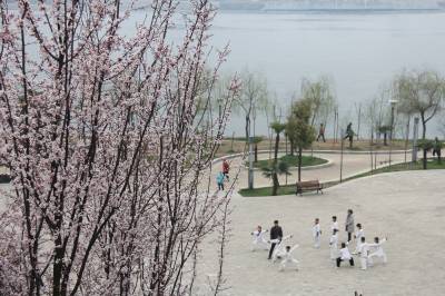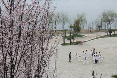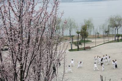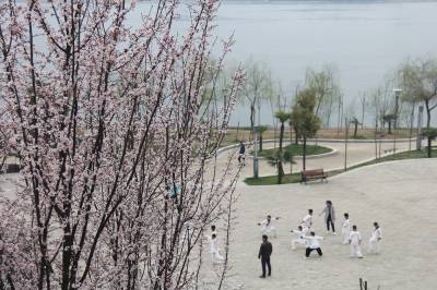 春暖汉江。 3月5日下午,丹江口市大坝下游汉江两岸的公园里各种树木发芽,花儿陆续绽放,花香四溢,生机勃勃,吸引游人前来踏春赏景。图为一群练武的孩子在教练指导下挥拳,踢腿,跑步。 视界网 钱芹 摄 详细通联:丹江口职业技术学校办公室:钱芹 邮政:442708 手机:13477990812