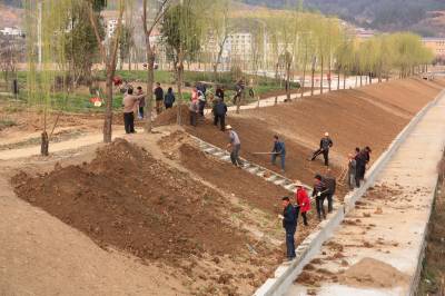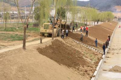 改善环境 竹溪在行动 3月6日,竹溪河景观河堤上正在平整培土,为绿化作准备。让天更蓝,水更清,打造绿色宜居家园。(视界网 王忠春 摄)