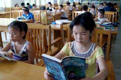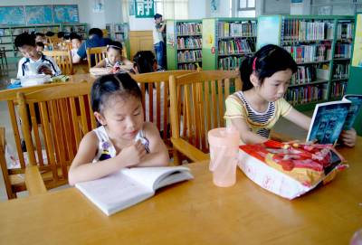 6月30日,一群中小学生在孝感市图书馆里阅读图书。随着暑假到来,多中小学生选择图书馆阅览图书轻松愉快度暑期。市图书馆值班工作人员称,现在的人流量是平时的三倍,每天外借书籍达3000多册,相比6月份提高了43%。李文勇摄孝感晚报新闻中心电话:13995858558