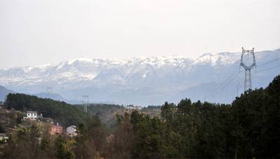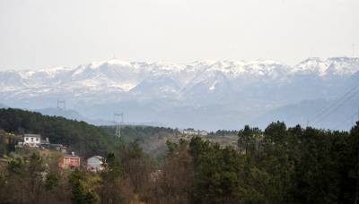 近日,宜昌海拔600米以上地区的乡村田野降落“桃花雪”,夷陵区分乡镇境内高山冰雪覆盖,山下春意萌动,乡村呈现山寨版“玉龙雪山”景观。视界网 张国荣 摄