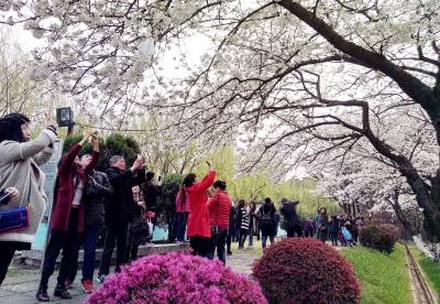 > 晴川假日酒店樱花开 旅客游客分流赏花好
