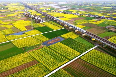 高铁百里画廊游 3月16日,一列动车通过枝江市十里店村。枝江市农民在沪渝高铁两侧种植了万亩油菜,形成了天然的百里画廊,营造了经济与环境和谐发展的氛围,动车在画中游,驶向希望的春天、驶向高速的春天。视界网刘卫东摄