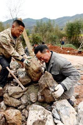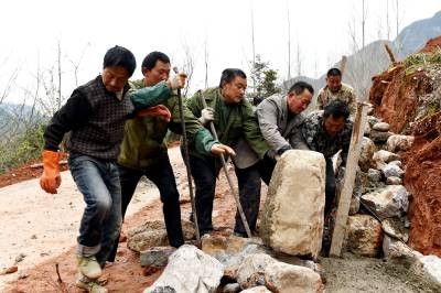 3月19日,村民正在为通往景区的公路砌扎墙。去年底,南漳县巡检镇指山坪村在连续投资的基础上再次投入20多万元为村里通往鬼谷子洞的1.6公里的道路硬化。他们在村集体经济薄弱,基础设施建设任务重、压力大的情况下,干部带头垫资,村民出工出力,在通往旅游区沿途中可见一道道整齐的扎墙正在施工之中,一条绿色的旅游通道正在打造,车辆停车场已经建好,为旅游事业发展迈出了第一步。