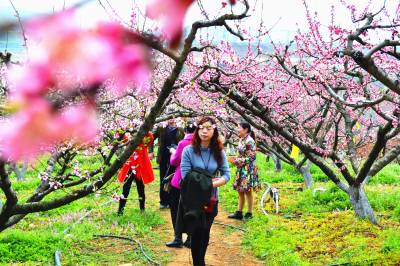百里桃花醉游人
