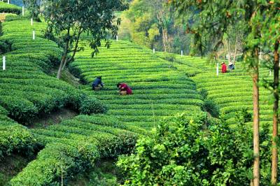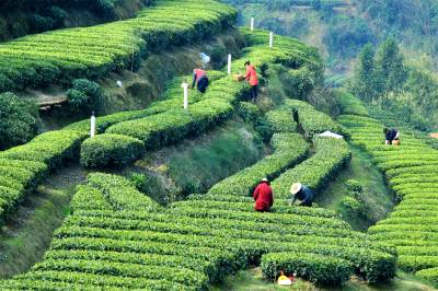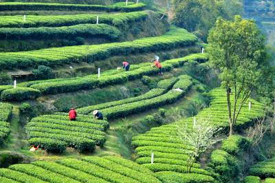 三峡茶园春光美 移民抢摘早春茶