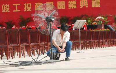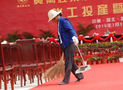 7月3日,在武穴市黄冈亚东水泥一期工程竣工投产庆典仪式中,为仪式顺利举行的工作人员,尽职尽责,用汗水演绎了他们在平凡的岗位上做出不平凡的业绩,没有他们辛勤的付出,就没有仪式完美的成功。本报视界网刘飞摄
