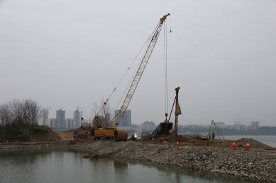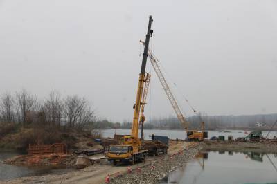 > 丹江口沧浪洲湿地步行桥建设正酣。