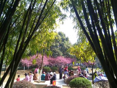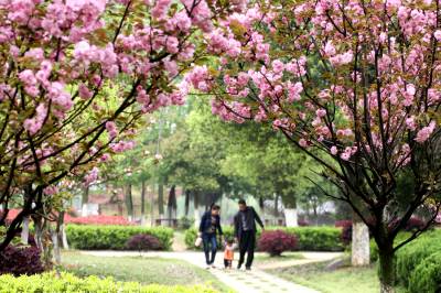 春暖花开的季节里,大冶世纪林踏青,游玩的人们。