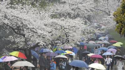 3月19日下午的江城响起了春雷,下起了小雨。此时在武汉大学樱花大道观景赏花的市民,外地游客和在汉大学生们,纷纷撑出了色彩斑斓的雨伞,雨点打在花瓣后,飘落在草丛和湿地上,白花花的一片,与涌动的花雨伞,交织在一起,形成了春雷雨声中赏花醉美流动风景线。
