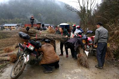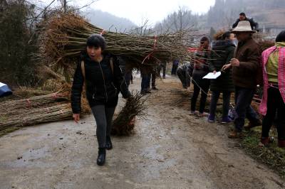 本报讯 3月17日,建始县花坪镇隔马坦村农户在忙着领银杏树苗。 今年,隔马坦村为重点贫困村。为确保全村2017年整村脱贫出列,建始县财政局精准扶贫工作队与该村村支两委经过充分走访调研,确定该村按照“1+X”产业发展模式,走长抓经济林,短抓药材、烟叶发展之路,采取长短结合、以短养长、林下种植的模式,在全村发展银杏780亩、魔芋200亩、白肋烟230亩,为全村农户脱贫致富打下坚实基础。(本报视界网图片库卢家文、王德玉摄) 地址:建始县财政局卢家文 电话:13972401505