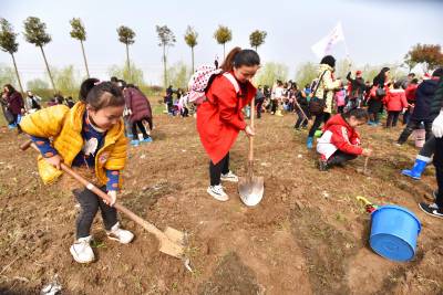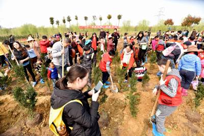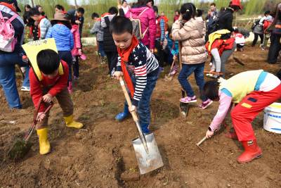 18日,来自孝感市城区的百余名家庭的孩子和家长一起来到孝南区红霞村邓家河农庄,参加孝感晚报第四届“爱绿护绿”公益亲子植树活动,用实际行动倡导每个市民家庭都加入到爱绿护绿行列,践行绿色生活,改善生态环境。自2014年以来,孝感晚报每年开展“爱绿护绿”亲子植树公益活动,共组织了千余人参与公益植树或绿树认养,已成为当地具有一定社会影响力和号召力的公益活动。 (视界网 王云清 摄)