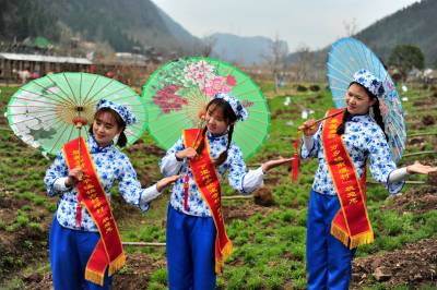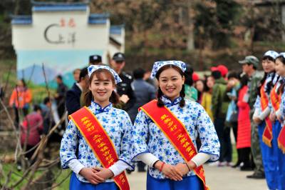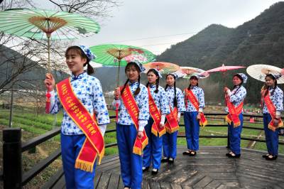 近日,宜昌市夷陵区“十大美丽乡村”揭晓,各村形象代言人“最美村姑”走进当地生态农业观光园,竞相为为“缤纷四季 乡约夷陵”乡村游代言,向游客推介美村美景、特色产品、游览线路等,成为山乡田园靓丽风景。 夷陵区位于风景秀丽的长江西陵峡畔,是三峡工程所在地。近年来,该区坚持景区游、乡村游两轮驱动,大力发展全域旅游,先后荣获“美丽中国”十强旅游县区、全国休闲农业和乡村旅游示范区等殊荣,2016年接待中外游客1267万人次,旅游综合收入144亿元。视界网 张国荣 摄