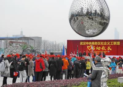 3月21日上午,武汉中央商务区社企义工联盟启动仪式,在中央商务区王家墩地铁站广场举行。当日有区内80多家企业300多名义工朋友和各级领导,参加了启动仪式。此活动由武汉中央商务区管委会社会事务服务中心、江汉区万松街工委和办事处主办。“义工”起源于十九世纪西方国家的慈善服务,在世界上存在和发展了100多年,本质是服务社会,核心是“志愿、利他、不计报酬”。它是社会进步人士对和谐互助社会的更深理解和对人生价值的更高追求。该区有众多企业精英和社区居民积极参与义工,就是他们进步理念和先进文化的最好展现。中共湖北省委副书记、武汉市委书记陈一新在我市第十三次党代会提出了要“加快建设现代化、国际化、生态化大武汉”的战略任务,明确江汉区要提升城区功能品质,把武汉中央商务区建设成为城区转型和形象品质提升的特色区块。江汉区委也再次明确要将武汉中央商务区建成国际化社区。