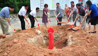 7月3日,恩施市舞阳坝街道办事处七里坪小学民盟光汇烛光小学教学楼开工奠基。为深入开展”农村教育烛光行动”,改善农村学校办学条件,提高农村师资水平,民盟中央与光汇石油集团联手合作,计划于今年在中西部部分省市援建10所小学,恩施市七里坪小学选列其中。据了解,七里坪小学是一所村级完全小学,有13个教学班600余名学生,办学条件特别是教学用房不能满足实际需要。作为”农村教育烛光行动”援建对象,该校将新建一栋教学楼,工程完工后,学校将更名为”七里坪光汇烛光小学”。
