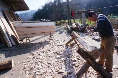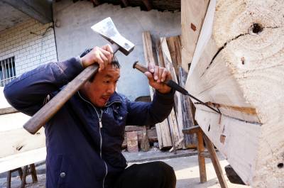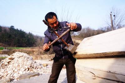 在郧阳区五峰乡肖家河村一组今年41岁的肖志涛仍然与65多岁的肖明军师傅坚持他的执着和坚守,家俱没有人做了,他们改做小板凳和小靠背椅,大的活就是为老年人做寿木,俗称棺材,即老人去世后的最后归宿的地方。即使这样一年也做不了几副,但师徒两人有求必应,为的是不能荒废了这门手艺,至于后继无人那也是没有办法的事,现在年轻人谁会下这么大的力气来学这没有前途的活。据65多岁的肖明军师傅介绍,上世纪六七十年代木匠活可是乡村里受人尊敬的一个行业,给谁家打家俱可是好洒好肉好烟的招待。即使在生产队里干木匠话工分比普通工要高,口粮标准也比普通工高出许多,因为木匠是体力活和技术活,如今的山村木匠只剩下一个活做寿木了,今后20年农村老年人都相继过世了我们也就下岗了。