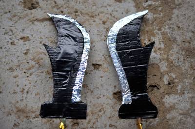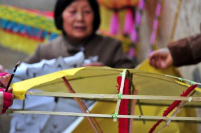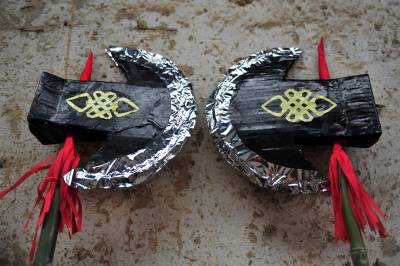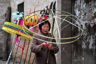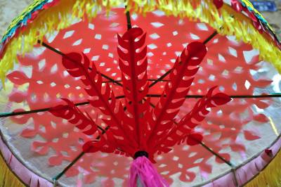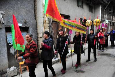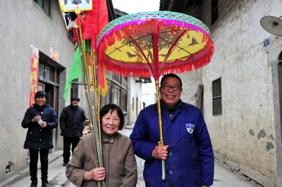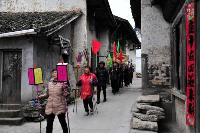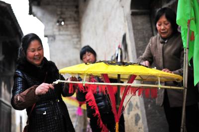 在分乡镇,銮驾主青分宝盖、主骨、花亭、鹅盆和拖尾“五节”,再有旗、锣、轿、伞,以及爪斧、钺锤、刀枪剑戟等十八般兵器,辅于灯、牌、回避、肃静等牌。全副銮驾144件,半副72件。送銮驾时每人扛一件,依次前行。加上鸣锣击鼓8人、吹长号2人、放三眼枪2人,全副总共最少162人,半副90人。2005年以后,每副銮驾数量减少到21件。视界网 张国荣 摄