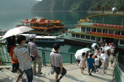 连日来持续高温不减,外地游客纷纷选择到长阳清江画廊旅游消暑,乘仿古游船观光度夏好不惬意。(通讯员杜强)