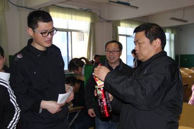 消防教官为教师作消防安全知识讲座 3月27日,消防教官正在为丹江口市汉江科技学校的教师讲解灭火器、防火面具的使用方法。当日,该校邀请十堰市社安防火宣传中心教官朱培森为全校100余名教师举办了一堂精彩的消防安全知识讲座。 视界网 钱芹 摄 详细通联:丹江口汉江科技学校办公室:钱芹 邮政:442708 手机:13477990812
