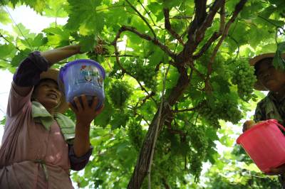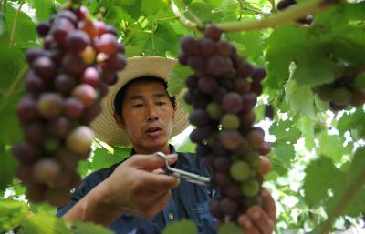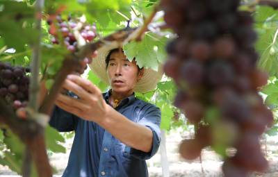 新时代的”地主”1日,潜江市龙湾镇竺场村葡萄种植大户尹敦雄在自己的葡萄庄园里为即将上市的葡萄进行管理。尹敦雄有20多年的葡萄种植经验,带动了一方百姓种植葡萄致富。为壮大实力,他又在周矶农场承包200亩地种植优质葡萄,成为拥有300亩葡萄庄园的”地主”,附近有30余位农民长期在他的葡萄庄园打工,学习种植技术。潜江市农垦系统一手抓土地集并和流转,一手抓农业招商,引进高效种植模式,带动农工增收。目前通过招商引资带动4万亩土地流转、集并。不少农工将土地出租后成为既可以坐收租金,又可在承租土地的公司打工,拿双份收入的新型”地主”。本报视界网吴燕军摄