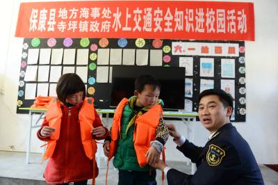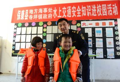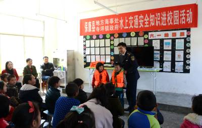 4月1日,保康交通运输局地方海事处执法人员走进该县寺坪镇台口小学,通过讲安全课、播放安全片、演示救生衣穿着,将水上交通安全知识送给小学师生。