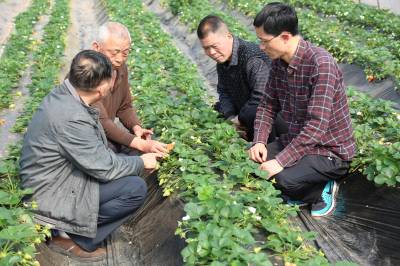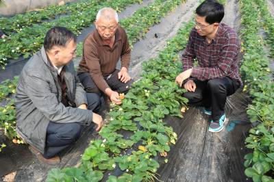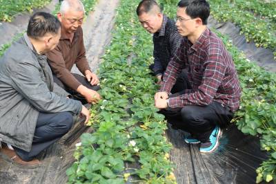 草莓大棚里来了技术人员