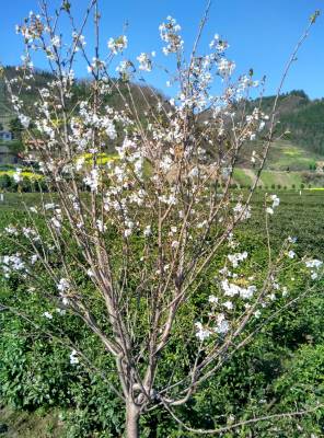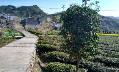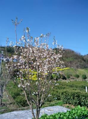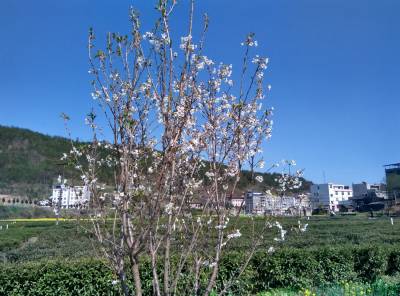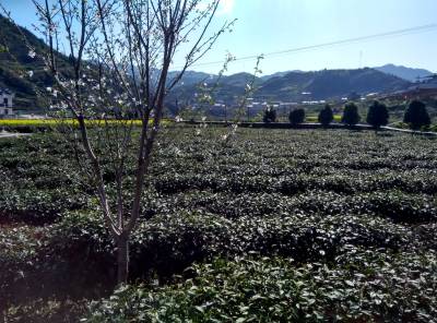 诗画田园风光美 4月1日,笔者在竹山县竹坪乡周家湾看到,蓝天下,百亩茶园,路边樱花绽放,桂花吐翠,园中茶叶叶芽嫩黄,与庸派民居构成了一幅繁花似锦的诗画田园风光。视界网 张云朝摄
