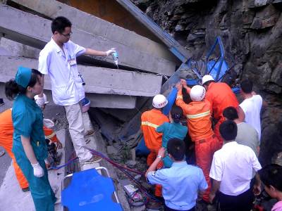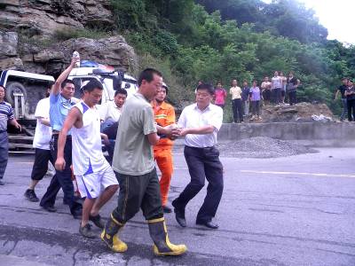 图文:县委书记停车救伤员4日下午14时许,两辆运输水泥预制板的大货车在十房路房县柳树垭隧道往城区方向约500米拐弯处突然发生车祸,一辆侧翻路边,一辆撞向了路边山体,一名司机被困在了变形的驾驶室内无法动弹,双腿被卡住并且流血不止,现场情形十分危险。此时,房县县委书记张歌莺恰好乘车路过,见状立即下车,组织消防、120急救人员及拦过往车辆参与施救。经过半个多小时的努力,伤者被成功救出,并被送往医院。房县县委书记张歌莺(图3:右一)现场指挥参与施救,并亲手将伤者抬上急救车送往医院急救,这才钻进公务车,悄悄离去。(本报视界网徐雁初摄)