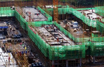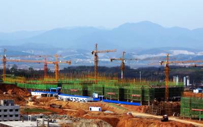 4日2日,建筑工人正在十堰市郧阳区汉江南岸的经济开发区内加快建设十堰外国语学校新校区。十堰外国语学校占地面积162亩,校区总建筑面积120000㎡,设计规模为84个教学班,可容纳3200名学生,是含学前到高中十五年全寄宿制学校。高中教育采用国际化办学模式,拓广人才培养渠道,走中西融合的多元化育人道路,预计今年9月全面建成并顺利实现开校。 视界网周家山 摄