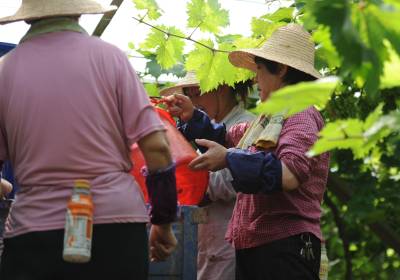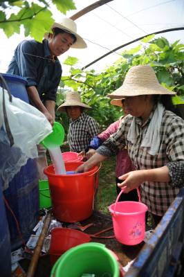 ”避暑”作业3日,傍晚”下班”时分,潜江市中心医院门诊大楼建设工地工人却开始”上班”,搭建施工脚手架。为避免强烈的高温,施工方采取错时施工制,科学合理调整施工时间,确保工人身体健康和施工安全。3日早晨,潜江市周矶葡萄园的工人师傅在忙着给葡萄施药,工人们头戴草帽,脖子上搭着湿毛巾,胳膊上戴着袖套,腰间挂着一壶水,全副武装保护自己。老板和工人们一同劳动,特地在早晨和下午进行劳动,避开了烈日高温。本报视界网吴燕军摄