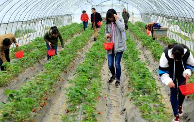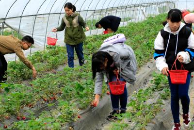 清明小长假期间,地处三峡坝区附近的湖北省秭归县茅坪镇各草莓采摘园迎来采摘客流高峰。近年来,湖北省秭归县推进休闲农业和乡村旅游融合发展,以设施农业资源为依托,推进以生态采摘、旅游观光为特色的休闲观光农业建设,实现旅游、农业双丰收。(视界网 王罡 摄)