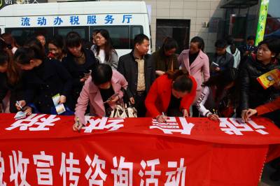 诚信纳税光荣 4月1日,纳税人在孝昌国税局、地税局联合开展第26个税收宣传月活动上签名。该县将开展纳税人学堂、“农民税校”、有奖答题、公布纳税信用红黑榜、走访推送税收优惠政策等一系列税收宣传活动,通过,营造理解税收、支持税收、诚信税收的良好风气。(视界网 高玉峰 薛玲 摄) 通联:孝昌县委宣传部 邮编:432900 电话:13972689582