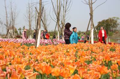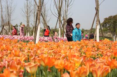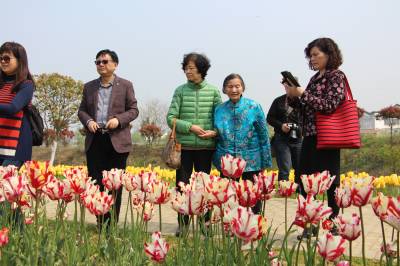 2017年4月1日,,春暖花开,儿女们扶着90岁的老母亲在金卉庄园踏青,观赏五颜六色的郁金香。春日的孝感城乡,可以看到众多的年轻人,带着父母外出踏青观景,安享晚年。孝感,简称孝,中国唯一一座以孝命名的地级城市,中国孝文化之乡,因东汉孝子董永卖身葬父,行孝感天动地而得名。如今,在孝感,孝是一种文化,一种行动,众多的年轻人带着自己的父母长辈外出踏青观景,行孝尽孝,用行动践行“孝”,弘扬孝文化。
