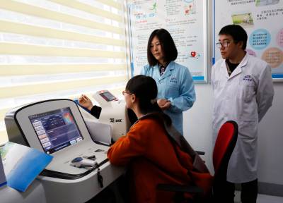 “健康小屋”为自助式体检评估系统,配有电子身高体重仪、自动血压仪、血氧检测仪、血糖检测仪、心电检测仪等常用电子测量设备。居民只需在机器的刷卡处刷个人二代身份证,按照屏幕提示进行简单操作,检测仪就会自动开始体检。不仅可以现场打印体检报告,体检数据还可传输到信息平台适时更新个人健康档案,也可以发送到居民手机。这种自助式健康检测和自我管理模式,极大提高了社区居民对自身重要健康指标的知晓率及高血压、糖尿病等慢性病的早期发现和干预能力,引导人们形成科学健康生活方式。视界网(王家满 秦立华 摄)