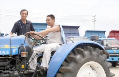 选购农机战三夏6月29日,云梦下辛店北堤村粮农徐中年在云梦农机协会下辛店分会副会长丁三年的陪同下,在孝感一农机销售中心相中了一台大型巡耕机,在享受2.6万元国家补贴后他现付5.7万元,高兴地将巡耕机开回云梦,承包了30亩良田的他准备大干一场。下辛店镇素有云梦”粮仓”之称,盛产糯米,全镇种植糯米7万多亩,现有大小农机450多台,基本实现农业机械化,高于云梦75%的农业生产综合机械化平均水平。签约摄影师晏美华摄