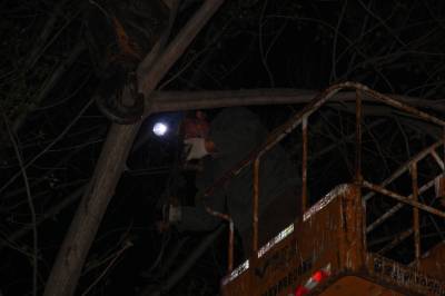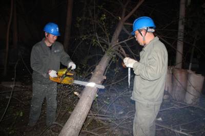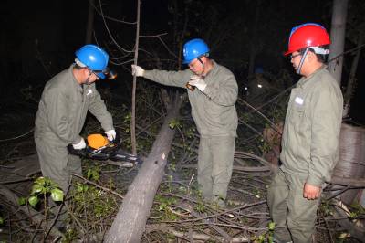 零点清障民生为先 4月7日清晨,谷城县供电公司线路建设检修工区员工在10千伏银联三线、银联一线、北河线聂家滩社区清理树障。20多名员工奋战3个半小时,21棵欧杨树被清除。2753户、瑞固铸造等15家企业可靠供电得到保障。(视界网马明刚摄) 谷城县供电公司马明刚 邮编441700电话18064138598