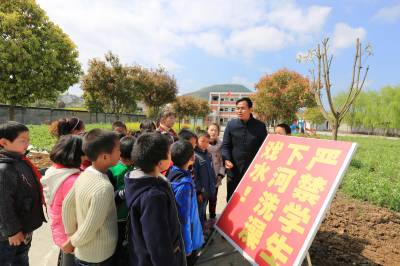 4月6日,竹山县宝丰镇曹家湾小学教师在校园内“严禁下河洗澡戏水”警示牌前,给学生讲解预防溺水知识。日前,该镇各学校采取多种形式加强预防溺水安全宣传教育,要求学生做到“六不”:不私自下水游泳;不擅自与他人结伴游泳;不在无家长或教师带领的情况下游泳;不到无安全设施、无救援人员的水域游泳;不到不熟悉的水域游泳;不熟悉水性的学生不擅自下水施救。通过扎实宣传,进一步增强学生的防溺水安全意识,以有效保护未成年人健康成长。