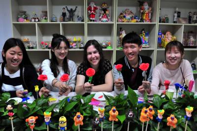 三峡大学外教带学生捏面塑玫瑰花 体验民间艺术魅力(客户端已用)