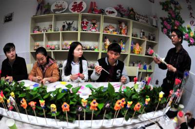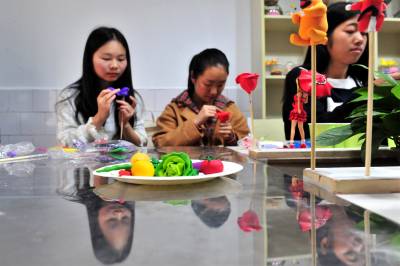2017年4月8日,宜昌市三峡大学创意DIY社团“面塑-捏出人间百态”活动在夷陵爱铭面塑工作室启动,该校美国籍外教舒音(Rachel)带领首批10名学生,在面塑达人艾民的指导下一起学习捏做玫瑰花等面塑作品,零距离感受和体验中国民间传统艺术的魅力。此次活动为期一个月时间,学生们志愿报名参加,捏做的面塑作品将进行评奖。