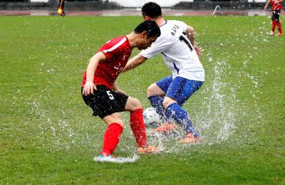 雨中乐享足球竞技