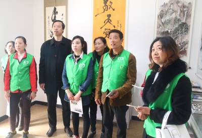 在劝学图书馆里,文化志愿者叶华程为大家详细进行讲解。孩子们看着装满图书的书架,稚嫩的脸上充满了惊喜和向往,小心翼翼地从书架上抽出图书细细翻看。义工队友们也被一幅幅书画作品吸引,在作品前聚精会神的观看,久久也不舍得把脚步移开。
