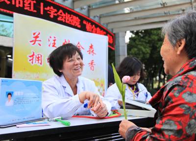 今年是世界帕金森病被发现200周年,为提高广大群众对帕金森病的认识,4月11日“世界帕金森病日”的当天,湖北省武汉市红十字会医院联合武汉医学会共同开展了“关注帕金森,拥抱郁金香”的义诊活动。该院10余名医护人员在神经内科主任潘爱华(左)带领下,为近200名群众开展了血糖、血压免费检测,帕金森病防治义诊咨询,此举受到病友们的点赞。