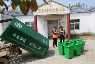 4月12日,孝昌县邹岗镇环卫所将一个垃圾箱和6个垃圾桶送到旗杆村,至此,该镇50个村已经全部更新了乡村环卫保洁设施。今年,该镇在外“四有人士”王学东情系家乡美丽乡村建设,向该镇捐赠了5台环卫车辆、200个垃圾箱等乡村保洁设施,价值近200万元。(视界网 黄一鸣 摄) 通 联:孝昌县委宣传部 邮编:432900 电 话:07128301359
