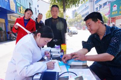 4日13日,十堰市郧阳区南化塘镇南化塘村13组39岁的村民正在区血浆站临时摊点上体检和抽血化验,准备为血浆站献血。为拓展血浆储备渠道,郧阳区血浆站向乡村求发展,大力宣传免费体检,2016年仅乡村就有10000多人为血浆站献血8.5万毫升。 视界网周家山 摄