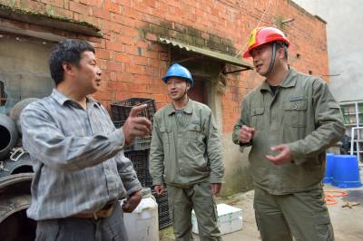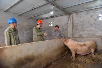 4月13日,在老河口市李楼镇张庄村8组残疾村民巴发举的养猪场里,国网老河口市供电公司李楼供电所的员工对巴发举脱贫以后的致富情况进行回访。2015年4月,巴发举成为李楼供电所的精准扶贫对象之一,三年来,供电部门为他免费装表接电、提供猪苗,使他的年收入达到目前的3万元,实现了脱贫致富。